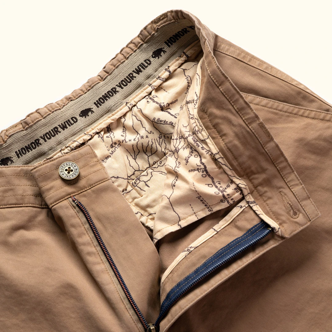 Made with a classic cotton blend, our Lobo Shorts are constructed with an elastic waistband for the perfect fit. Constructed with standard open pockets and hidden pockets in all the right places. Features a map of the Roosevelt river on interior fabric. Rests just above the knee with a 9” inch inseam.